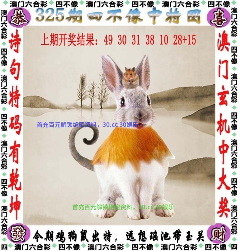 ①杀鸡马猪 ②图解特肖鼠羊狗龙兔 ③小数+合单 本人取特都是有思路可寻,对错看天意,喷狗绕道 |